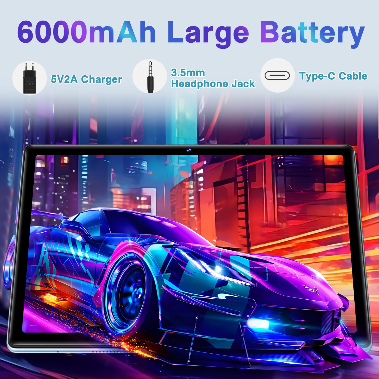 - 🔋🔋【6000 mAh Battery + 5MP/8MP Dual Camera】🔥🔥Tablets 10 inch android with 6000mAh large battery can easily work or play for a whole day! The back of the tablet features an 8MP HD camera that makes it easy to capture every moment of life even in low-light environments, while the 5MP front camera is designed for selfies and video calls. And the tablet andriod 14 is equipped with a separate Type-c+3.5 mm headphone jack.