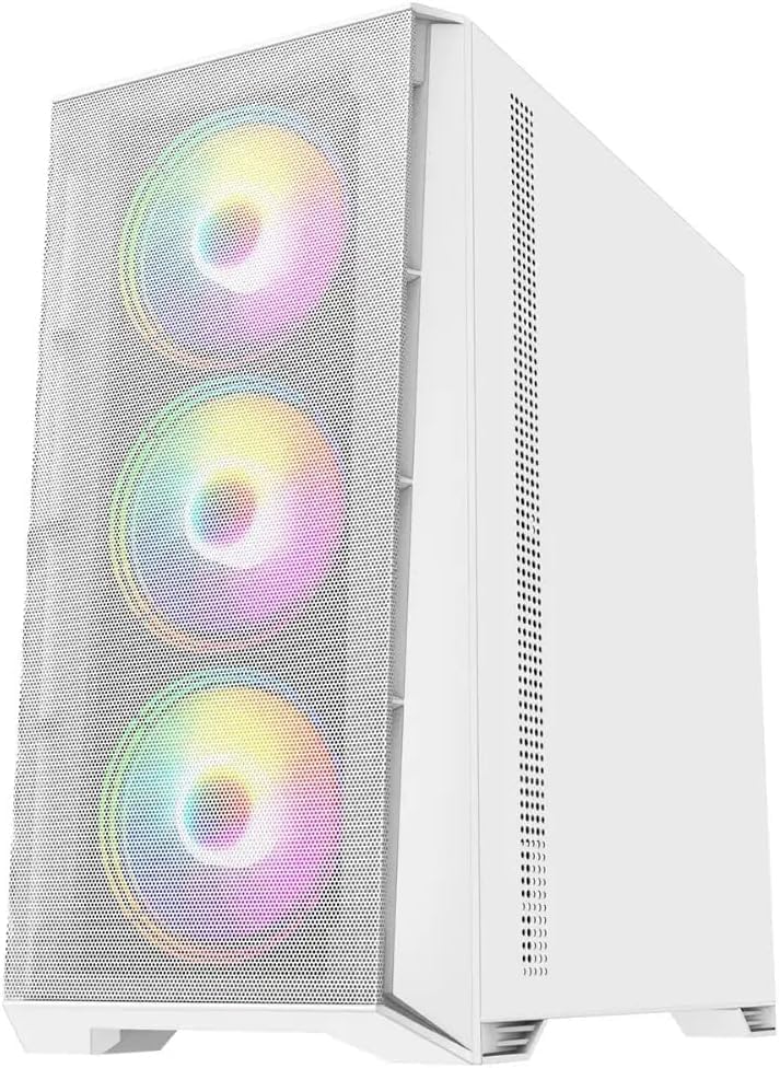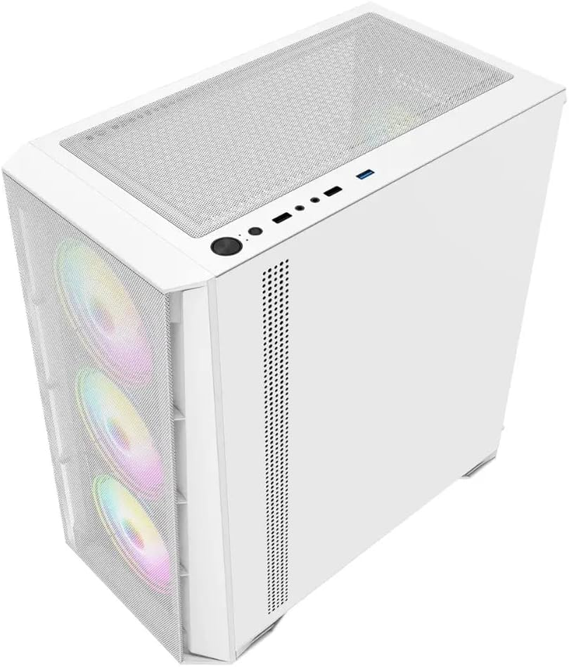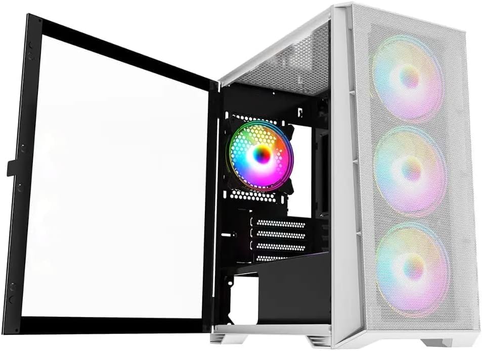 - 𝗛𝗶𝗴𝗵 𝗤𝘂𝗮𝗹𝗶𝘁𝘆 𝗖𝗼𝗺𝗽𝗼𝗻𝗲𝗻𝘁𝘀: 16GB 3200MHz DDR4 RAM , 1TB NVME SSD Drive, WiFi Ready, 500W Bronze Rated PSU combined with X= Mesh White Tempered Glass RGB Gaming PC Case.
