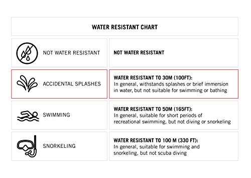 - Water resistant to 100 feet (30M)
