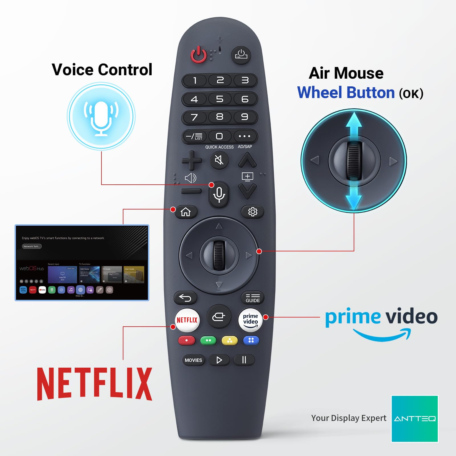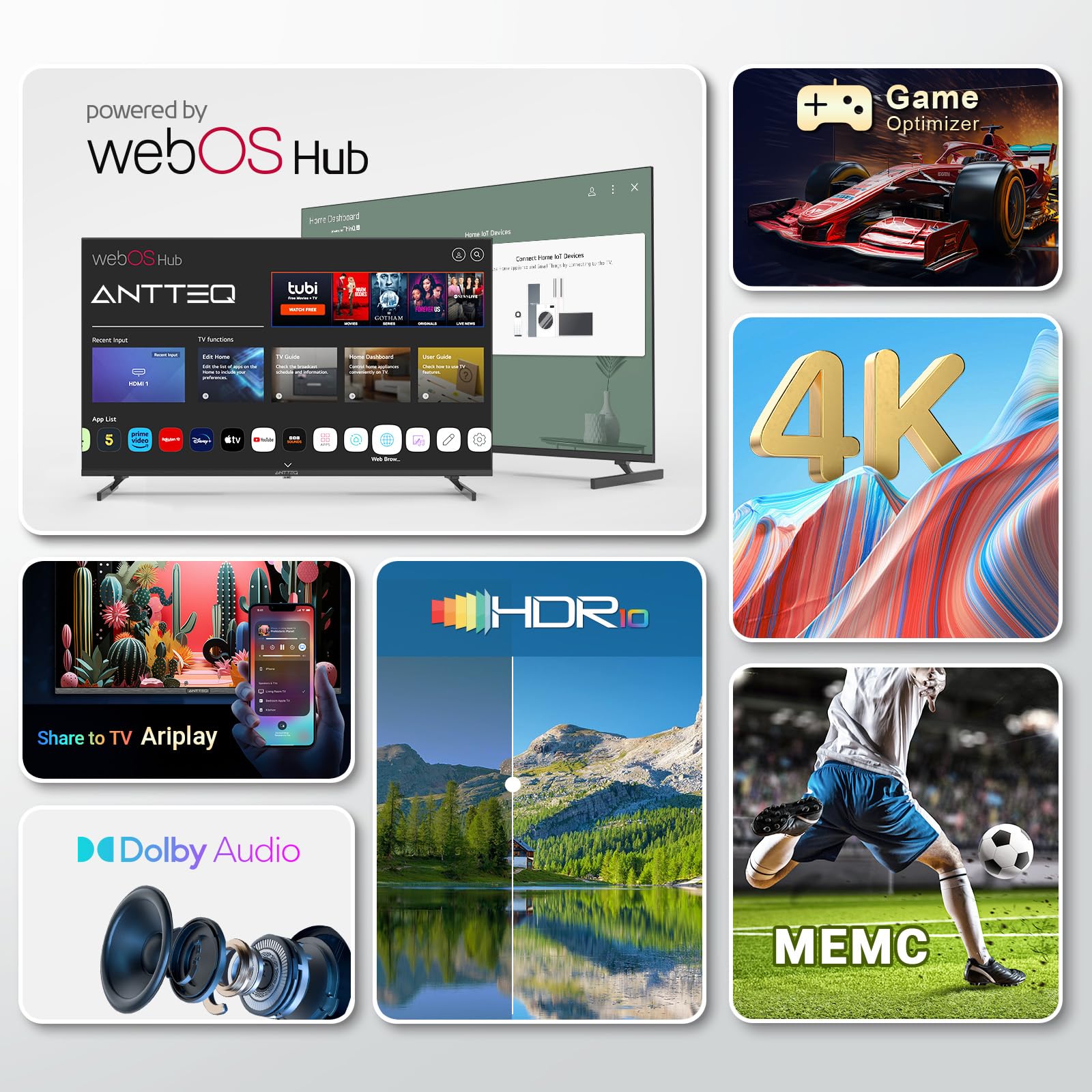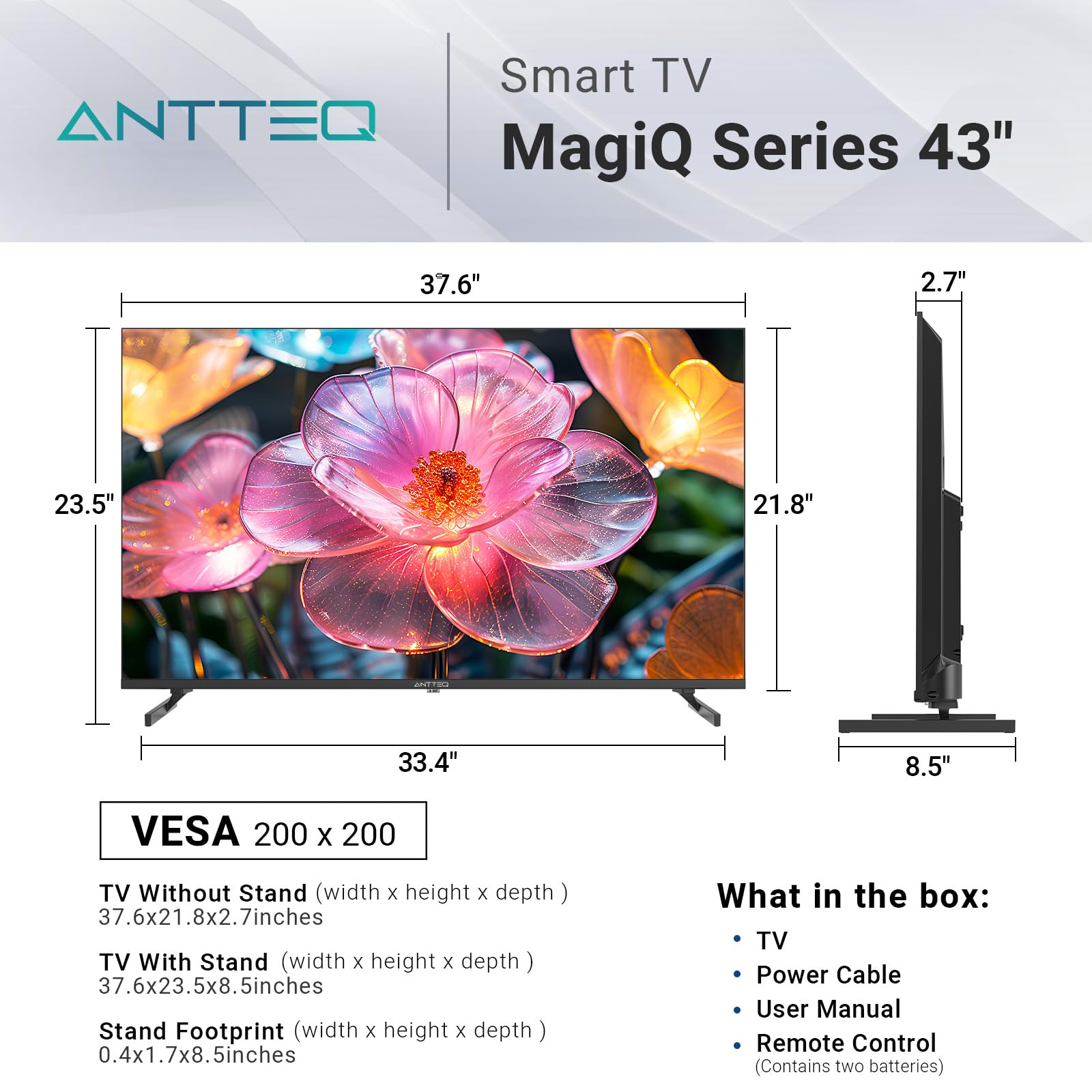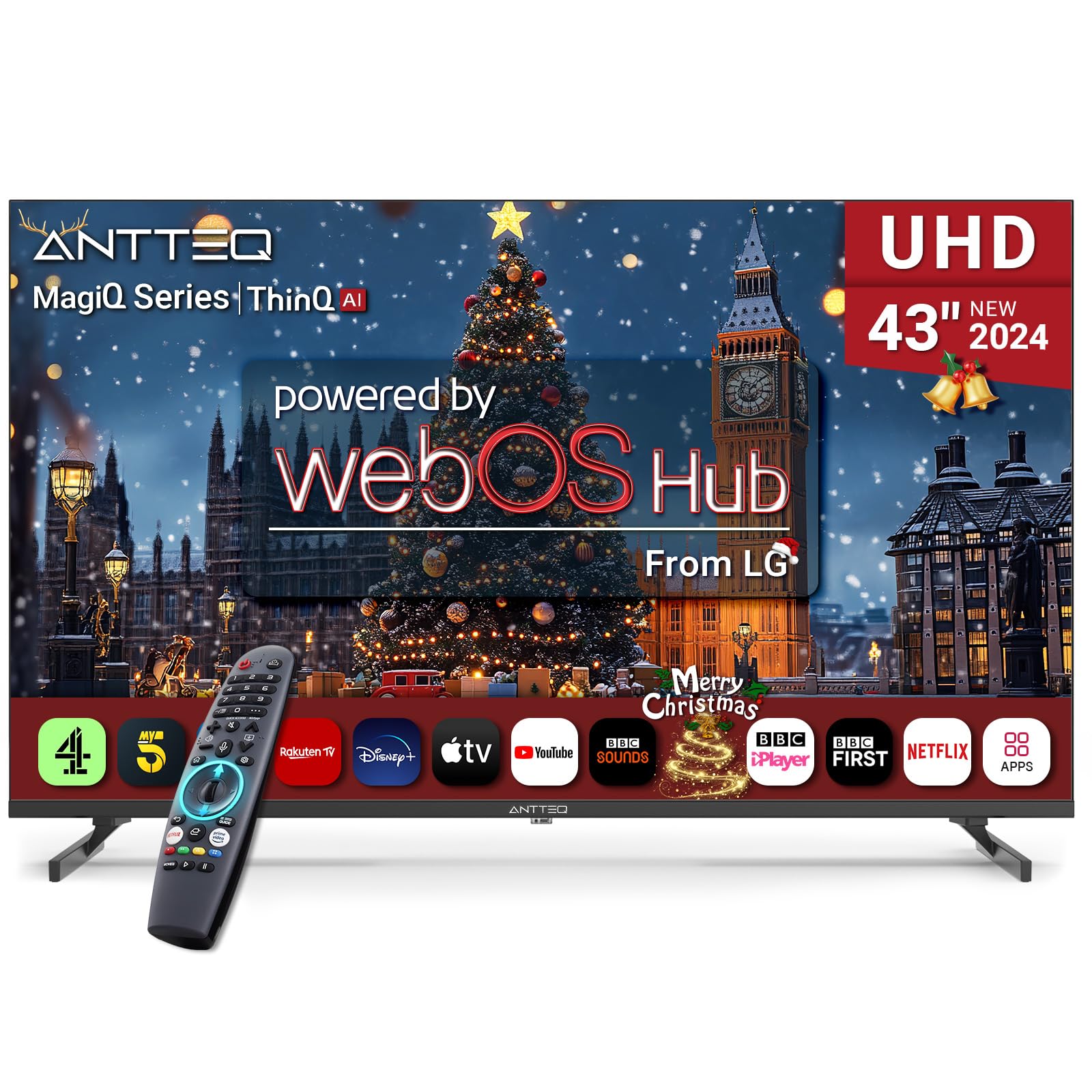 Antteq Smart TV 43 inch MagiQ 43″ 4K UHD webOS TV, ThinQ AI MEMC Work with Alexa 2024 Black Television
