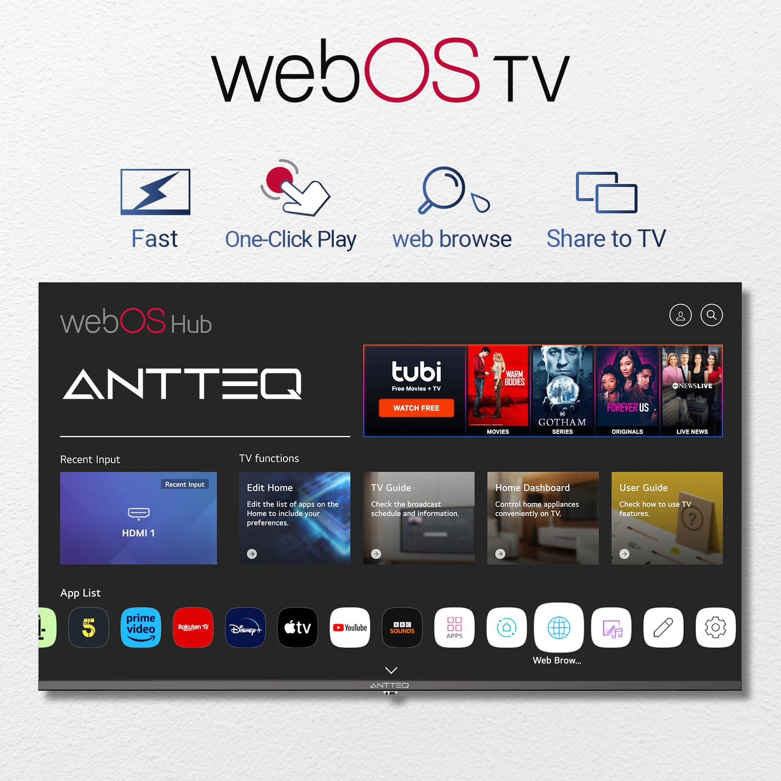 - [WebOS TV] WebOS by LG is a user-friendly Linux-based OS for smart TVs, offering familiar, accessible, and immersive experiences. Design your TV to reflect your preferences easily with built-in resources.