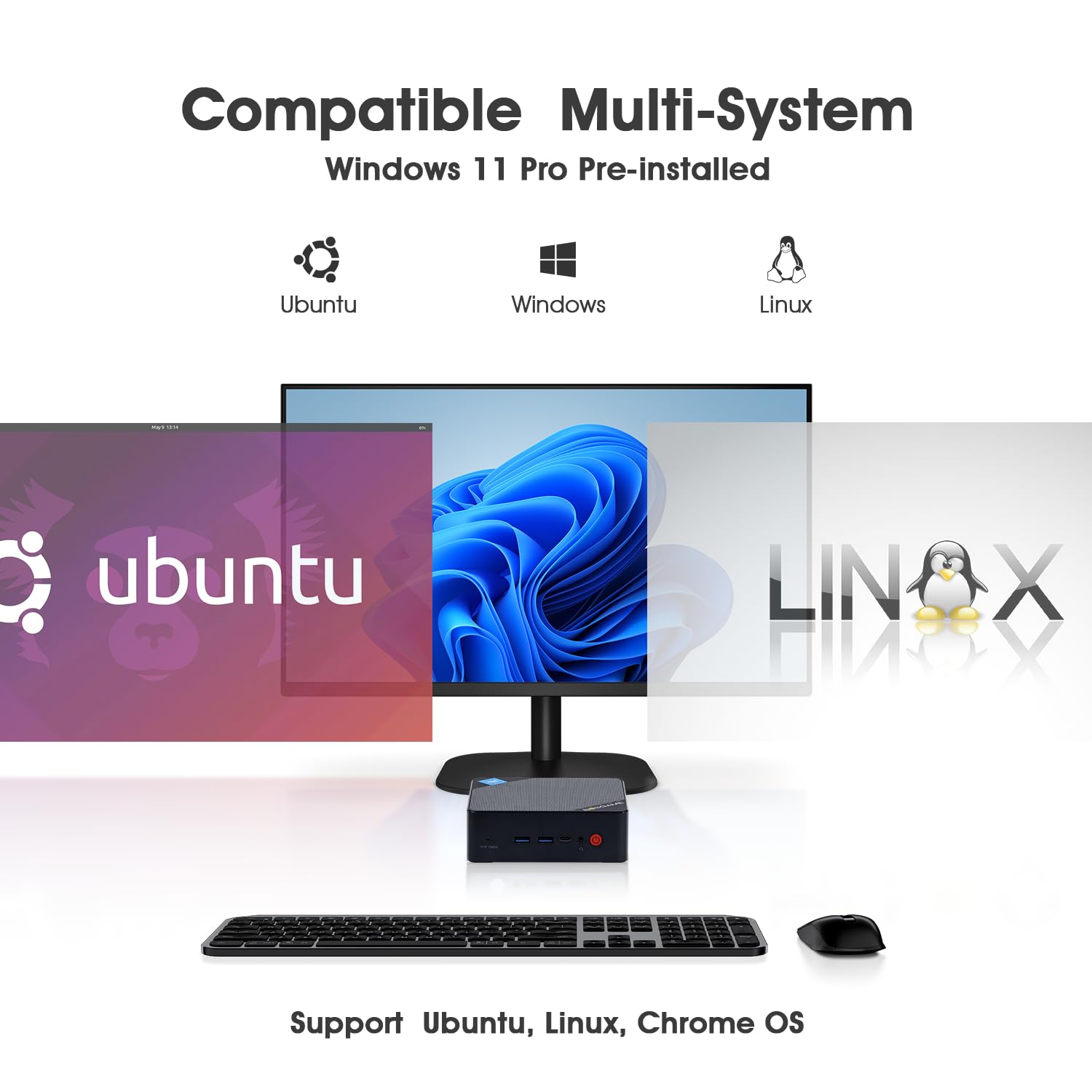 - 🌠【Dual HDMI+USB-C Ports 】The inclusion of dual HDMI ports and a USB-C port in the B100 Windows 11 Pro mini PC, coupled with Intel UHD Graphics support, With the capability to connect two monitors simultaneously through the HDMI ports and an additional monitor through the USB-C port, users can enjoy a triple-screen display configuration.This triple-screen setup enables users to perform different tasks across multiple monitors, enhancing productivity and efficiency by providing more screen real estate to work with.
