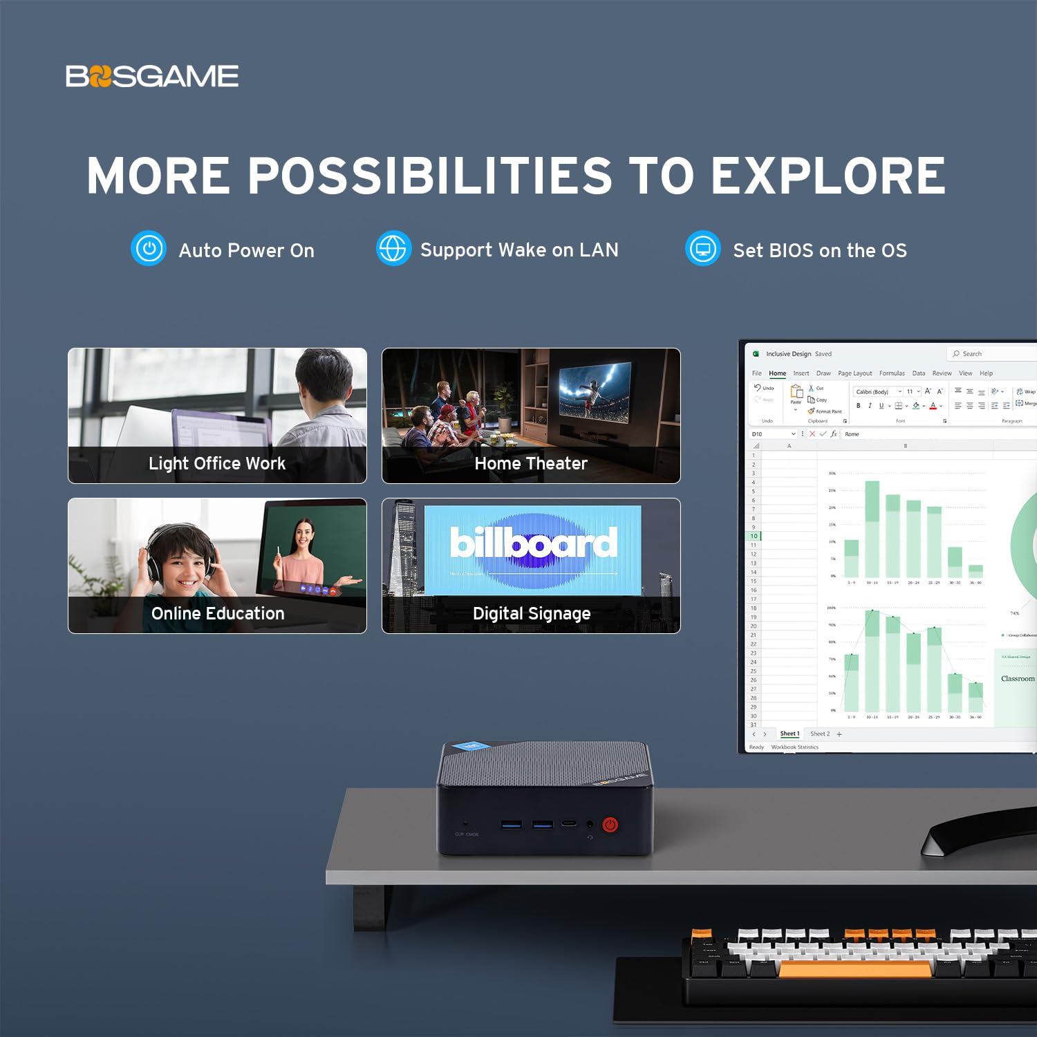 - 🌠【24/7 Support and 1-Year Warranty】Bosgame’s promise of lifetime technical support( 7*24-hour) and one-year warranty provides peace of mind to ensuring that customers receive ongoing assistance and guidance throughout the lifespan of their Mini PC. With dedicated support channels and knowledgeable staff, please rely on Bosgame to provide comprehensive assistance and solutions for any technical issues or inquiries that may arise.