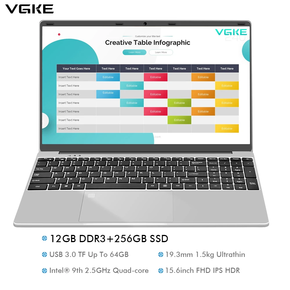 Cheap gaming laptop VGKE 15.6 Inch Intel Celeron J4105 12 GB DDR3 256GB SSD Win11 Color: Silver