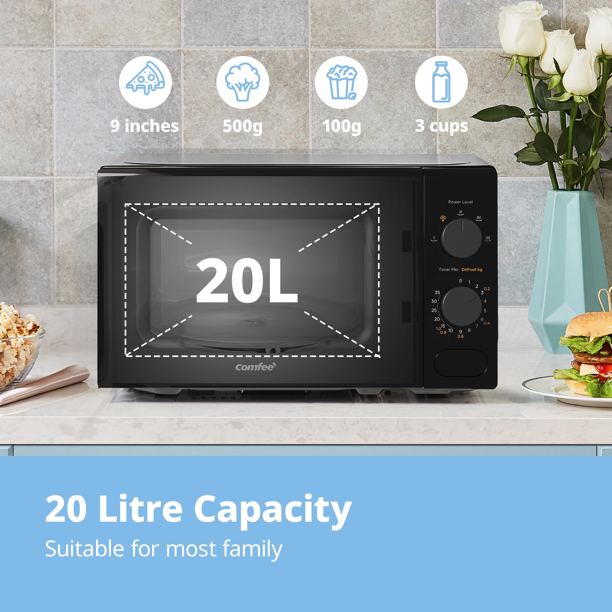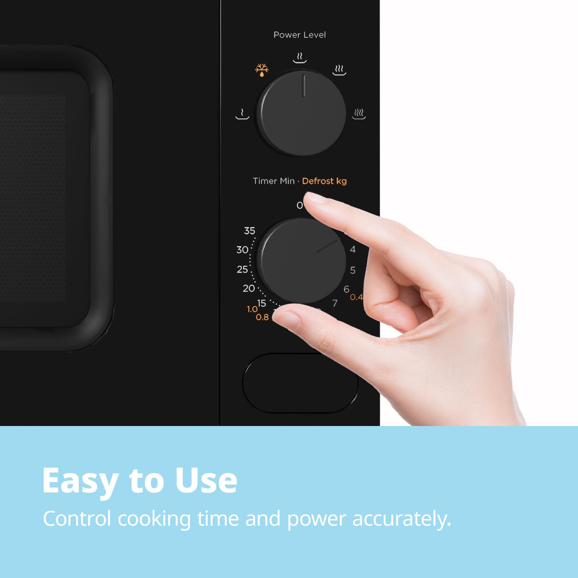 - 【Student/Elderly-Friendly Simplicity】 Designed for effortless cooking with intuitive manual controls. Manual dial controls make this the ultimate student & elderly firendly microwave. No confusing menus – just set cooking time (0-35min) and choose from 5 power levels. Ideal for quick meals, reheating takeaways, or late-night snacks.