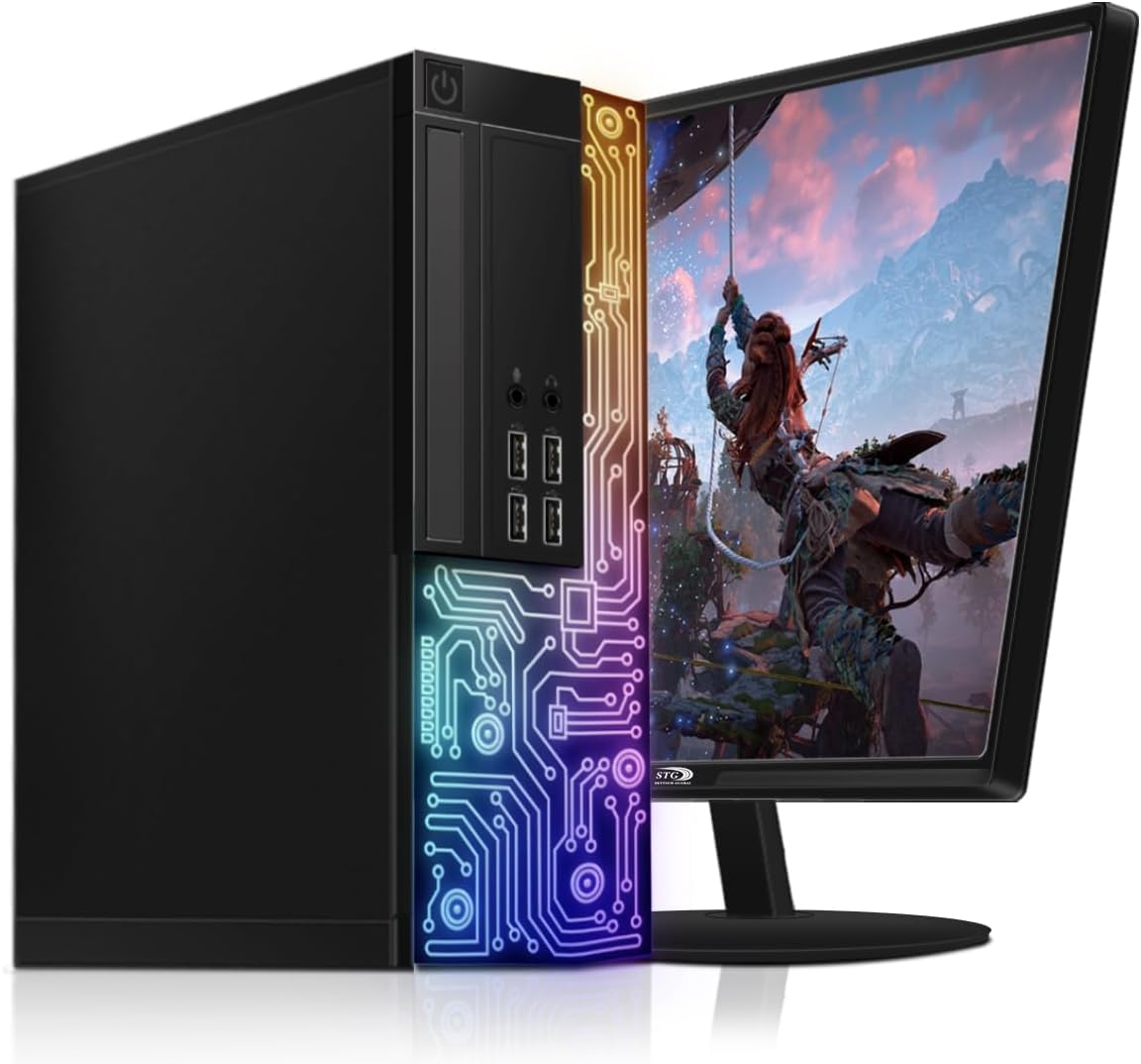 - Gaming PC with Monitor, new 24″ Full HD (1920×1080) monitor for stunning visuals: this PC for gaming delivers vivid, crisp colors, bring your games and media to life. With high resolution and fast refresh rate, you’ll enjoy a truly immersive visual experience.