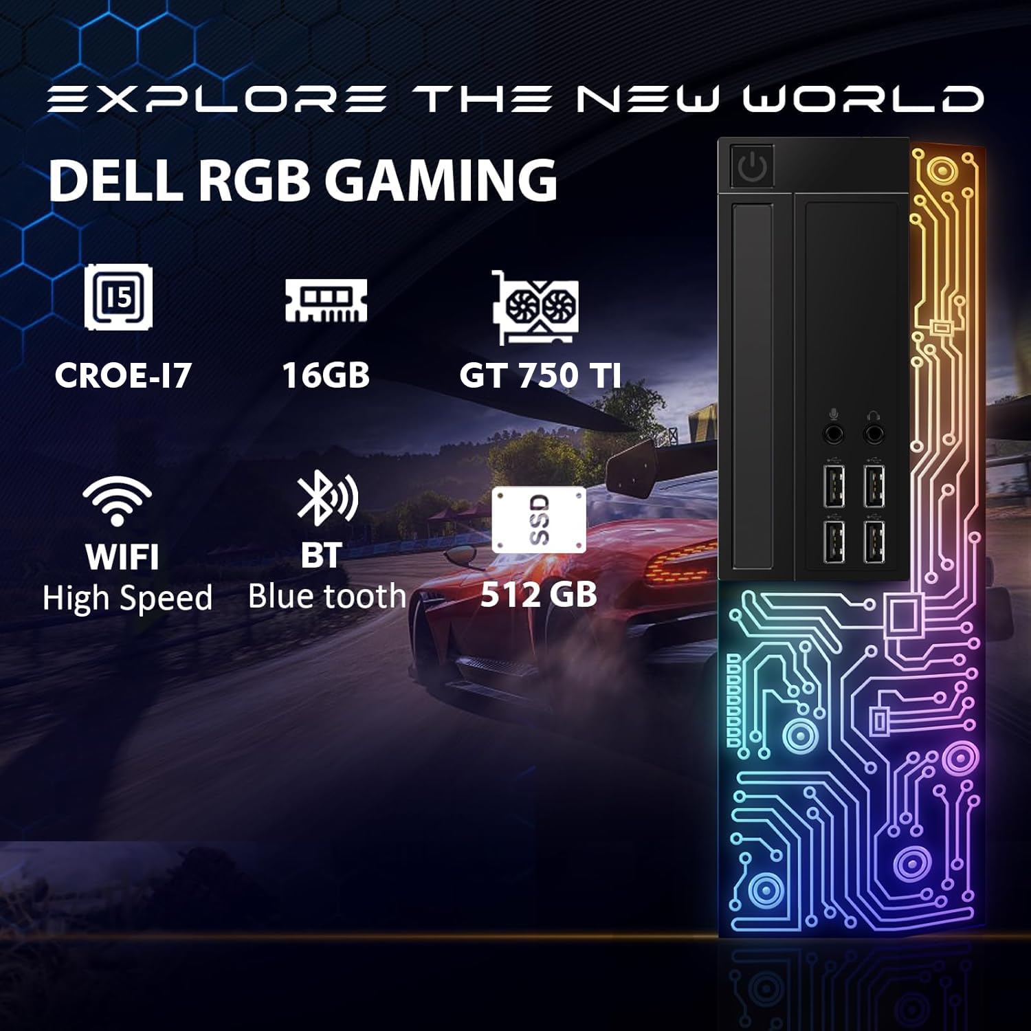 Details: Dell RGB Gaming Desktop Computer, GeForce GT 750 Ti, Intel Quad Core I7 3.4G up to 3.9GHz, 16GB RAM, 512G SSD, New 24″ 1080 FHD LED, 600M WiFi, RGB Headphone, W10P64 (Renewed)