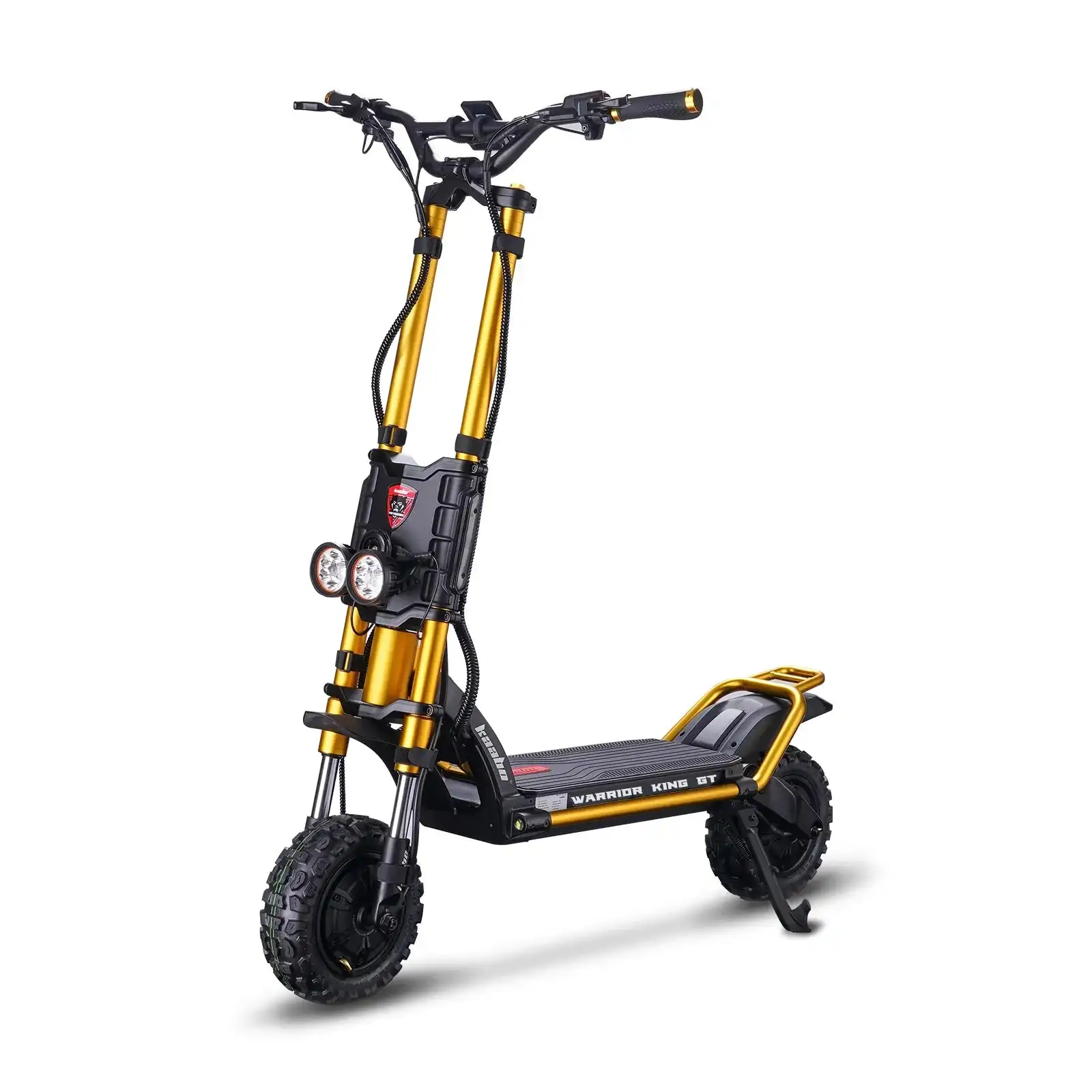 The Kaabo Warrior 11 Pro+ is the all-around answer for fast electric scooter capability and power. Dominate the road and nature alike in this heavy-duty, all-terrain e-scooter. The aggressive Warrior pushes the envelope to redefine what multi-purpose electric transportation means. Tame any road and conquer off-road riding with the dual motor and 11-inch wheels on the Warrior 11 Pro+.