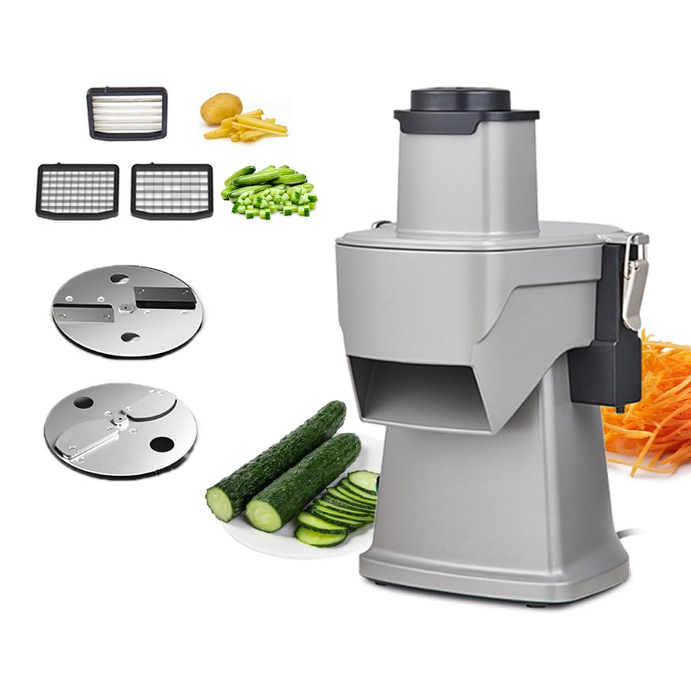 Electric Vegetable Chopper and Slicer, 200W, French Fry Cutter, Multifunctional 2 Sizes Shredding, 1-5mm Slicing, and Cube Dicing Machine