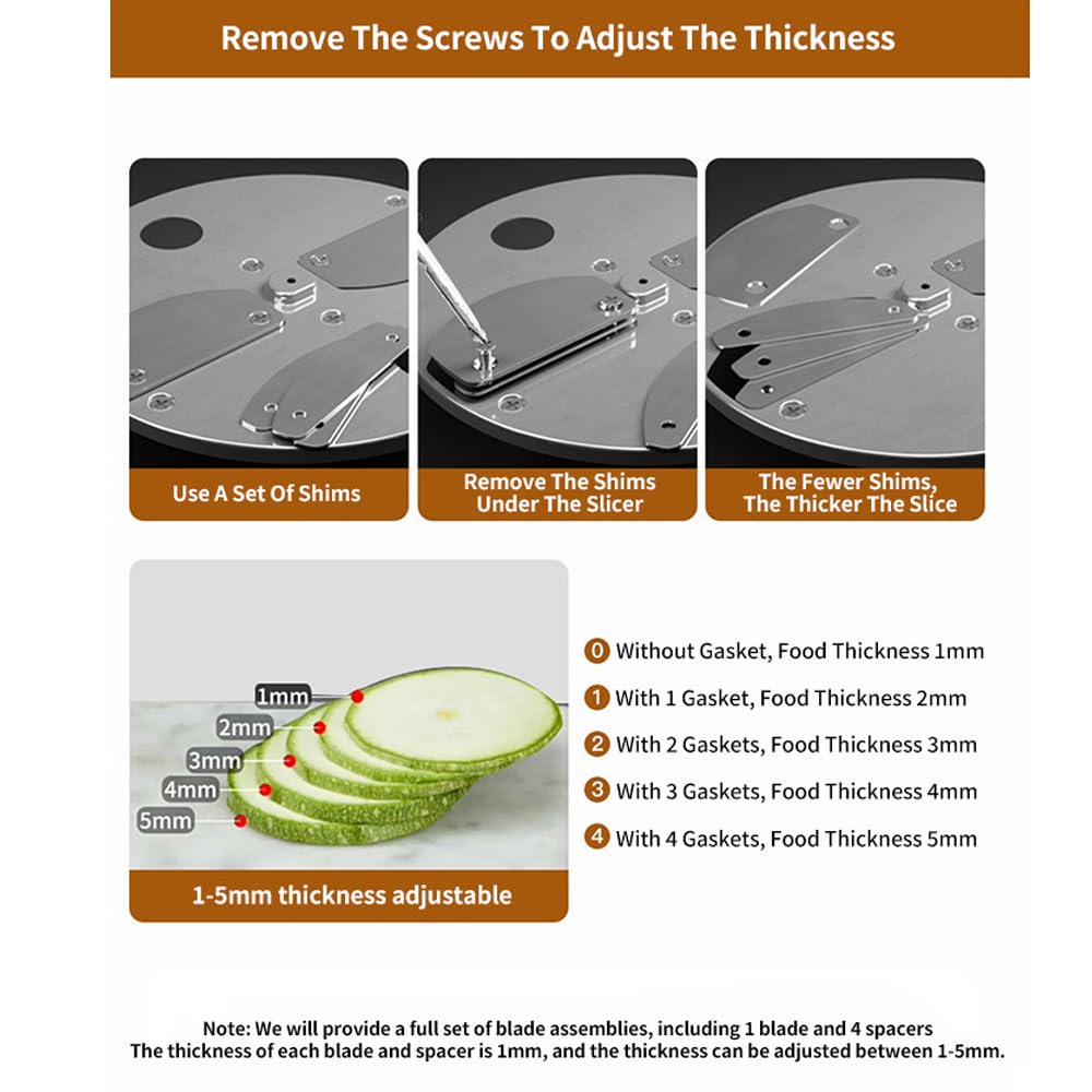 - ADJUSTABLE SLICING: 1-5mm slicing disc with removable gasket allows precise thickness control for perfect cuts every time