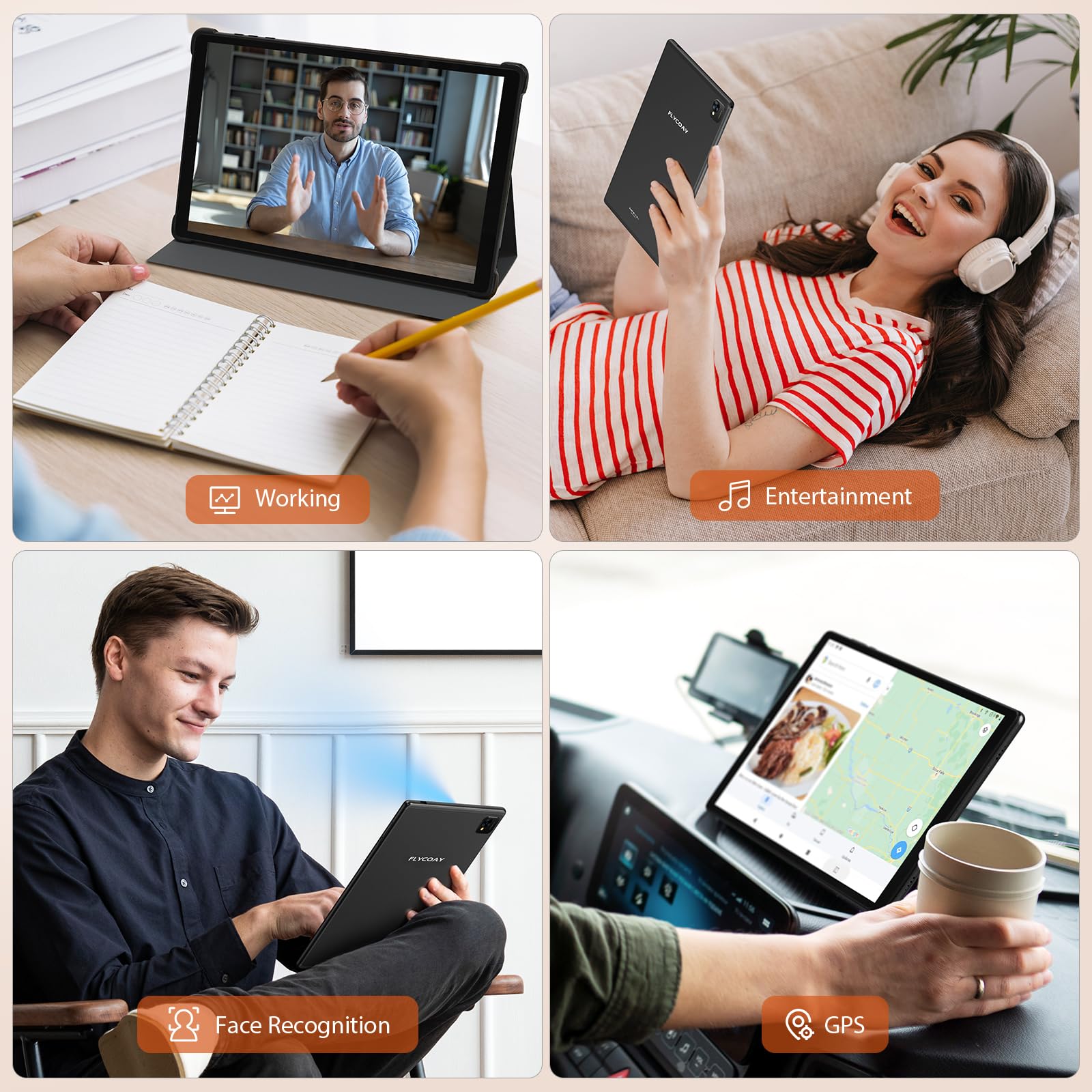 - 【Dual-bandWIFI 2.4GHz/5GHz+Bluetooth 5.0】The tablet supports 2.4GHz and 5GHz dual-band WiFi, which is able to automatically switch bands according to the environment, ensuring optimal network connectivity in different scenarios. Bluetooth 5.0 is optimized for low-power devices, maintaining high transmission speeds while consuming less power to extend the life of your device.