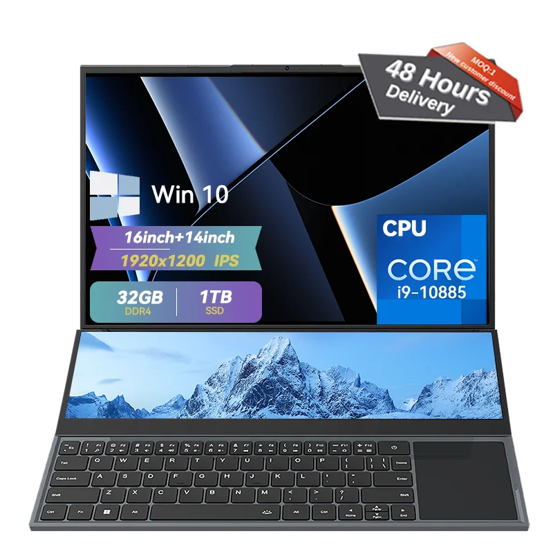 Gaming Laptop CPU I7-9850H Win11 Laptop Dual Screen 16+14inch Touchscreen 1920×1200 RAM 8GB/16GB/32GB SSD 128GB/1TB