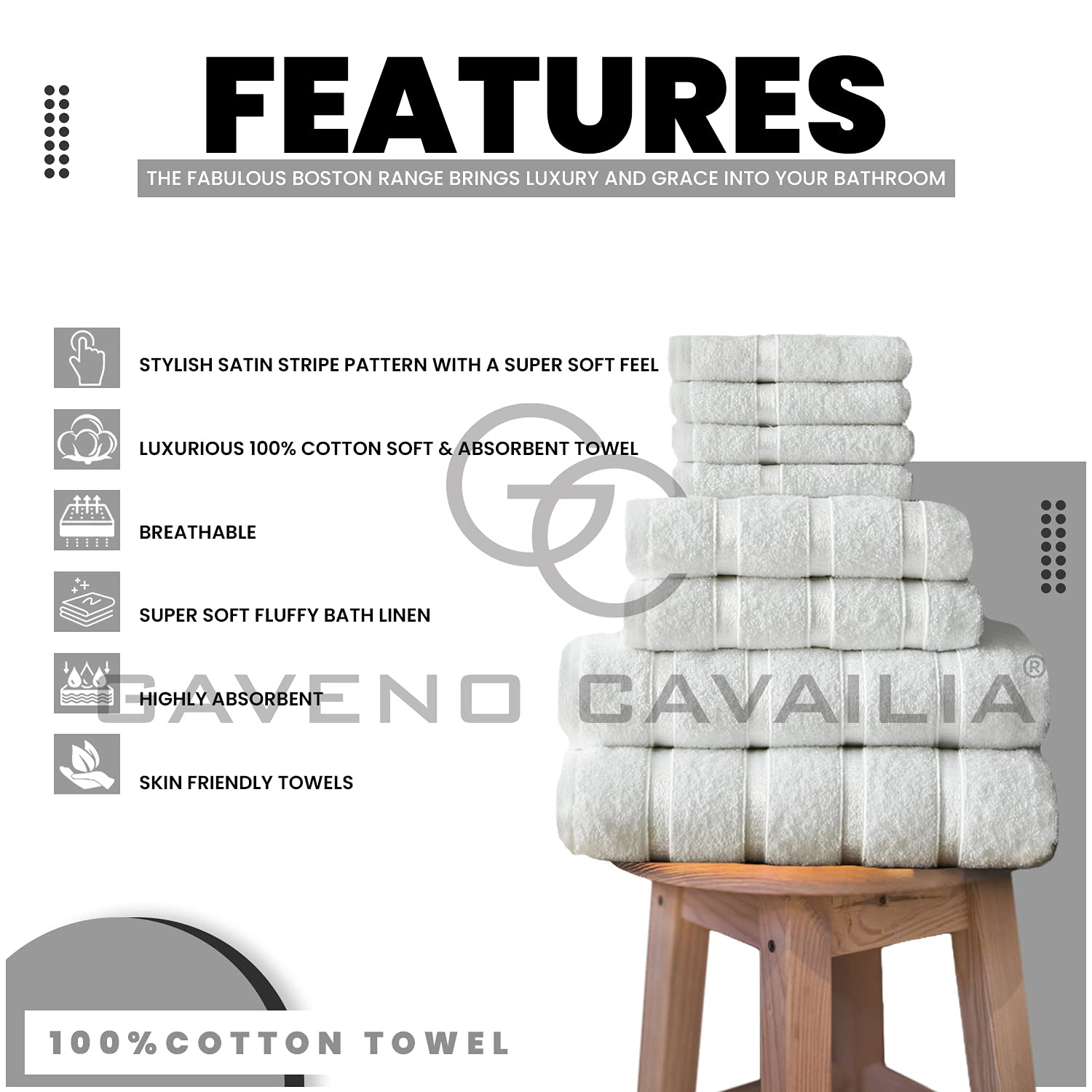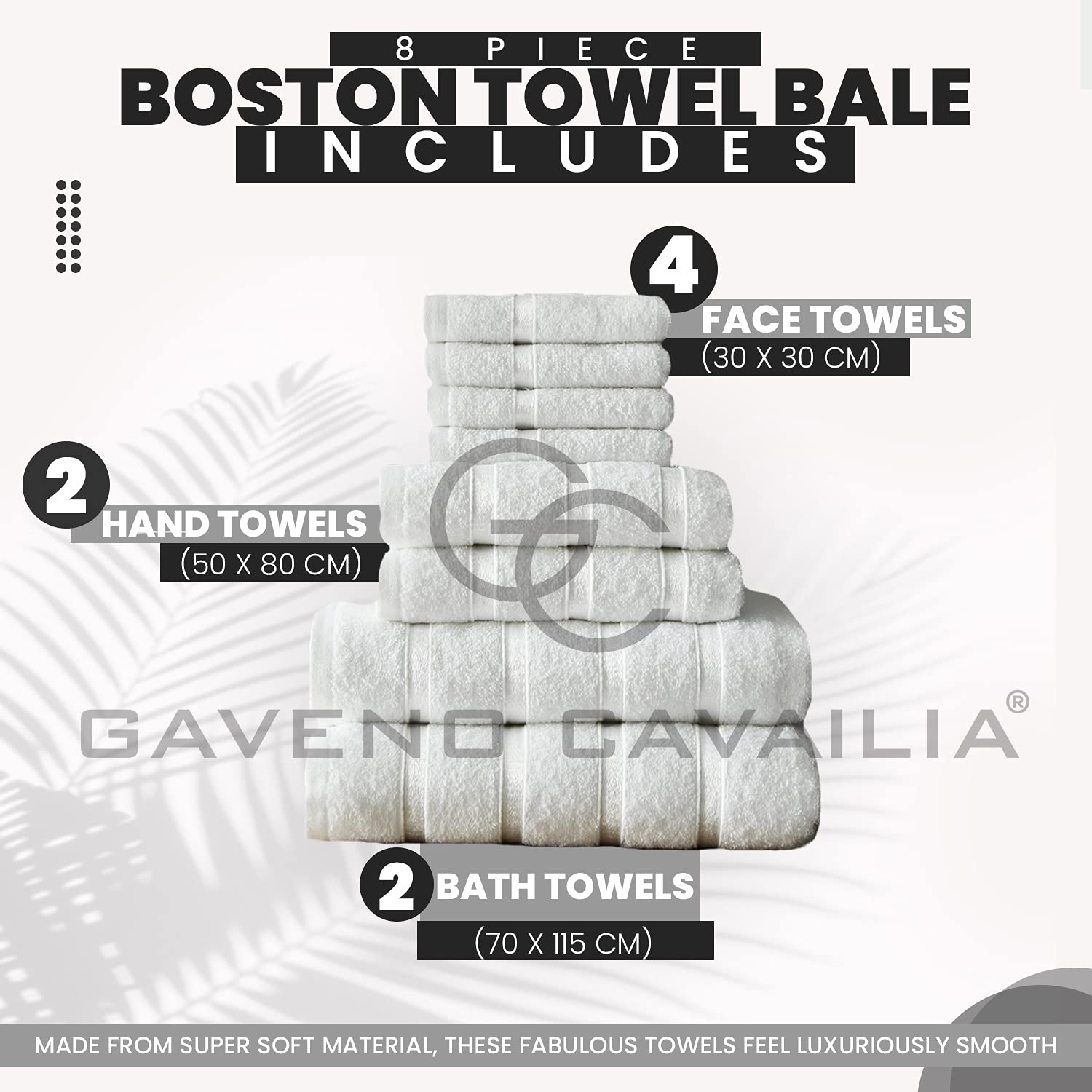 Gaveno Cavailia Luxurious 8 Pack Boston Towel Bale Set ( 4 Face, 2 hand and 2 Bath ), Cotton, White