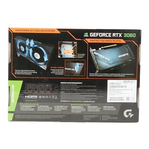 Gigabyte NVIDIA GeForce RTX 3060 WINDFORCE OC V2 Graphics Card – 12GB GDDR6, 192-bit, PCI-E 4.0, 1792MHz Core Clock, 2x DP 1.4, 2 x HDMI 2.1, NVIDIA Ampere – GV-N3060WF2OC-12GD