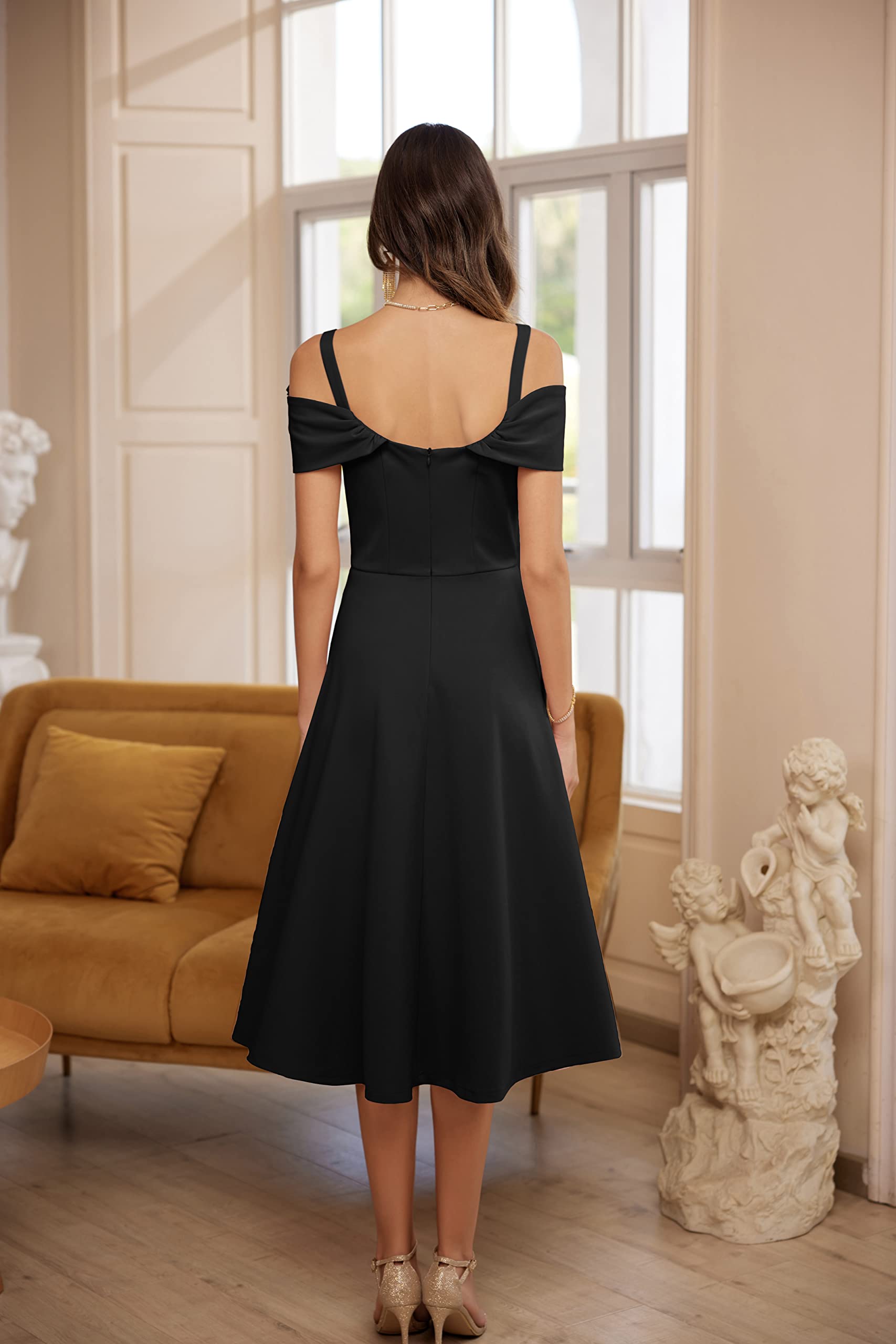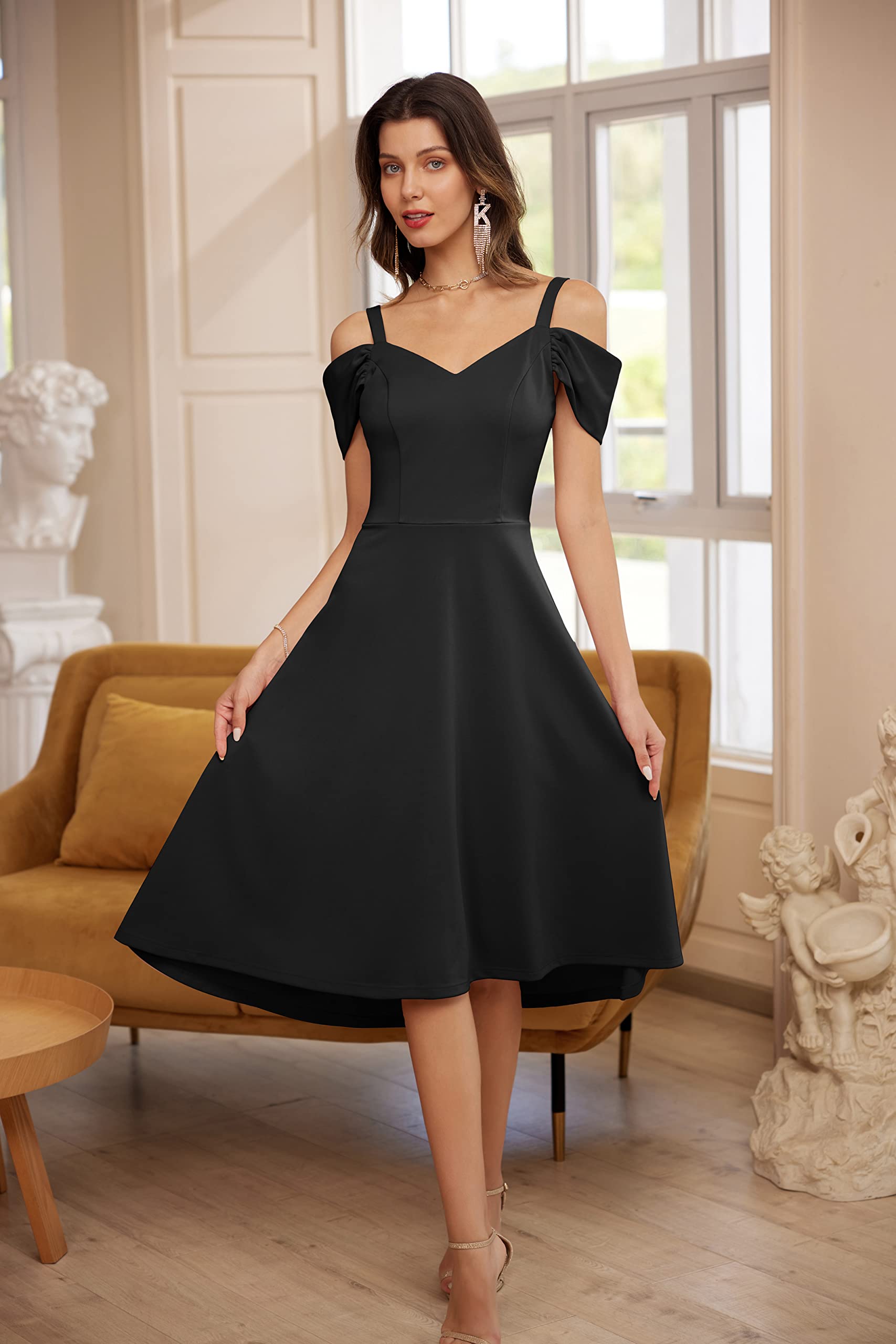 GRACE KARIN Women Fancy Cocktail Party Dresses Elegant Cold Shoulder A-line Black Evening Dress S
