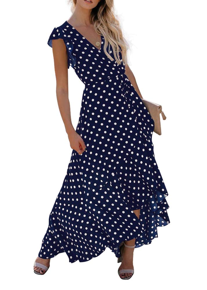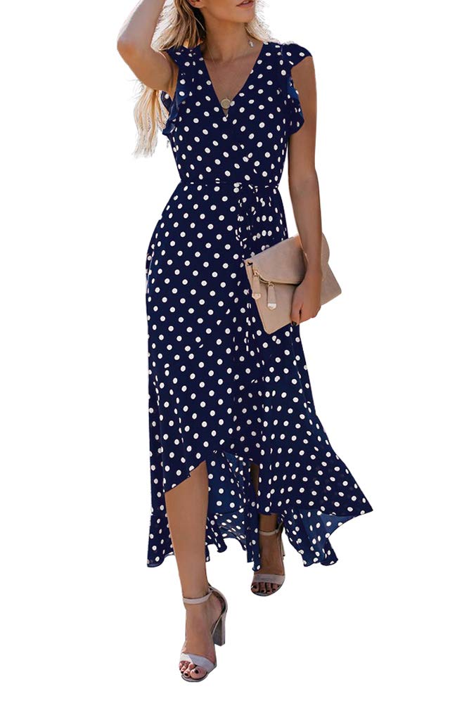GRECERELLE Womens Summer Maxi Dress Boho Floral Cocktail Midi Polka Dot Wrap Dresses V Neck Casual Party Bohemian Flowy Long Dress for Ladies