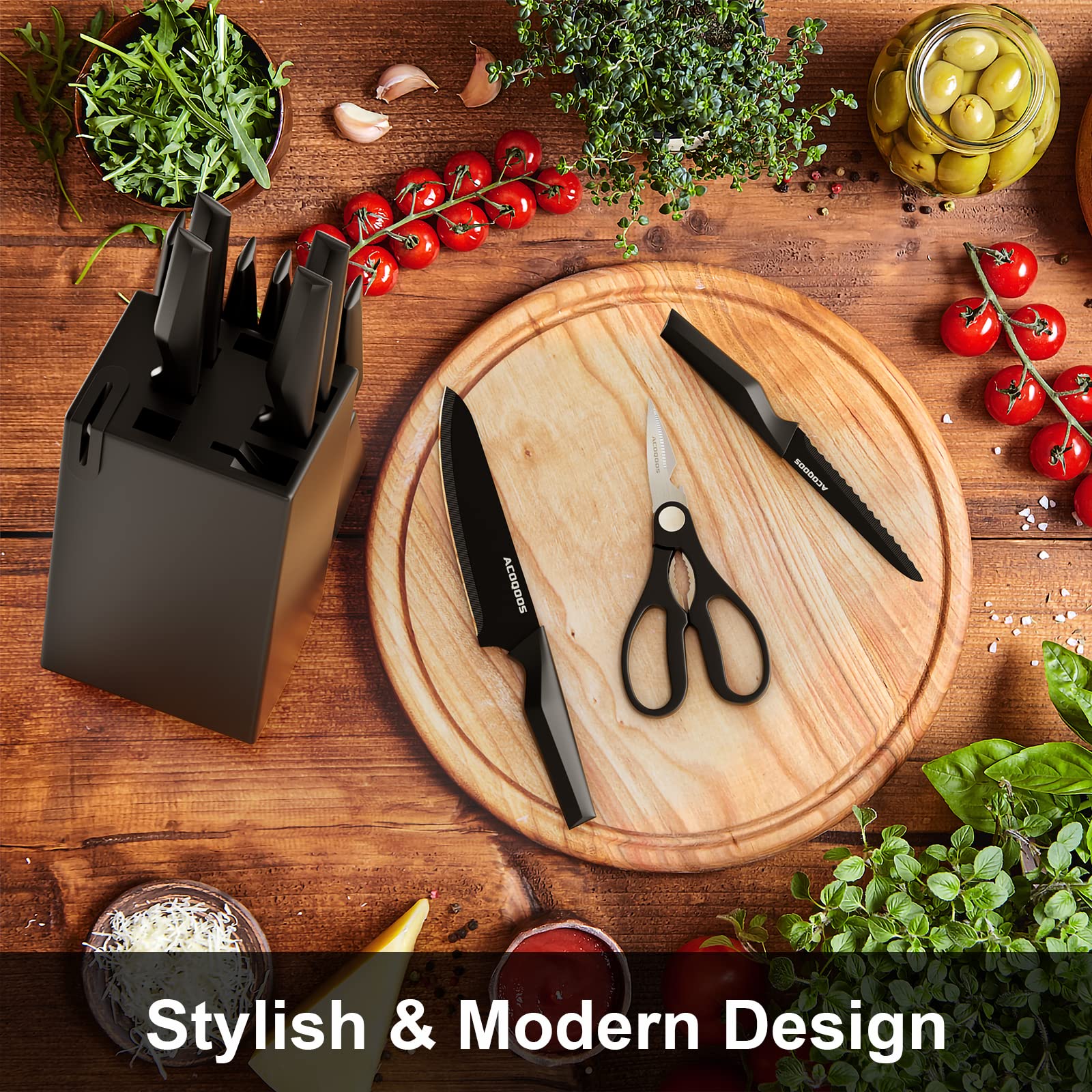 Knife Set with Block, 14 Piece with Built-in Sharpener, Kitchen Knives for Chopping, Slicing, Dicing Cutting by ACOQOOS