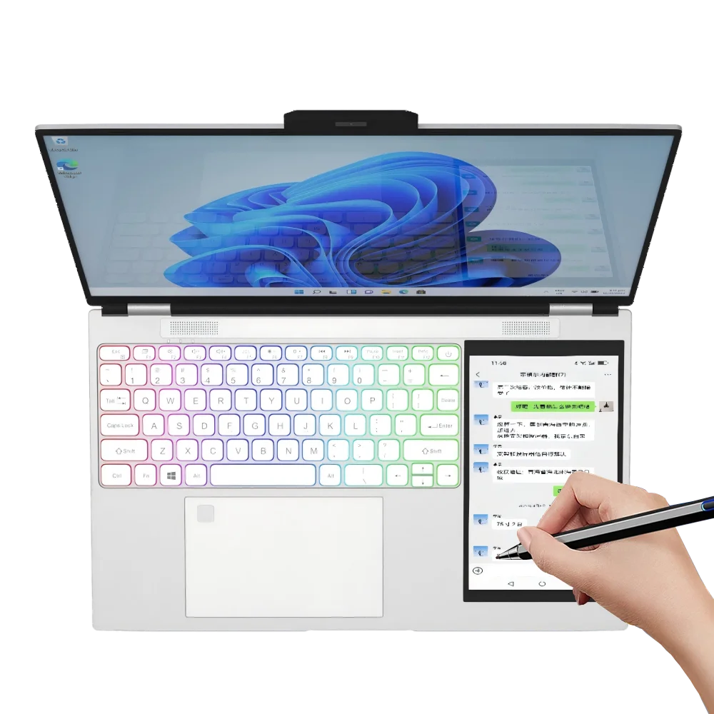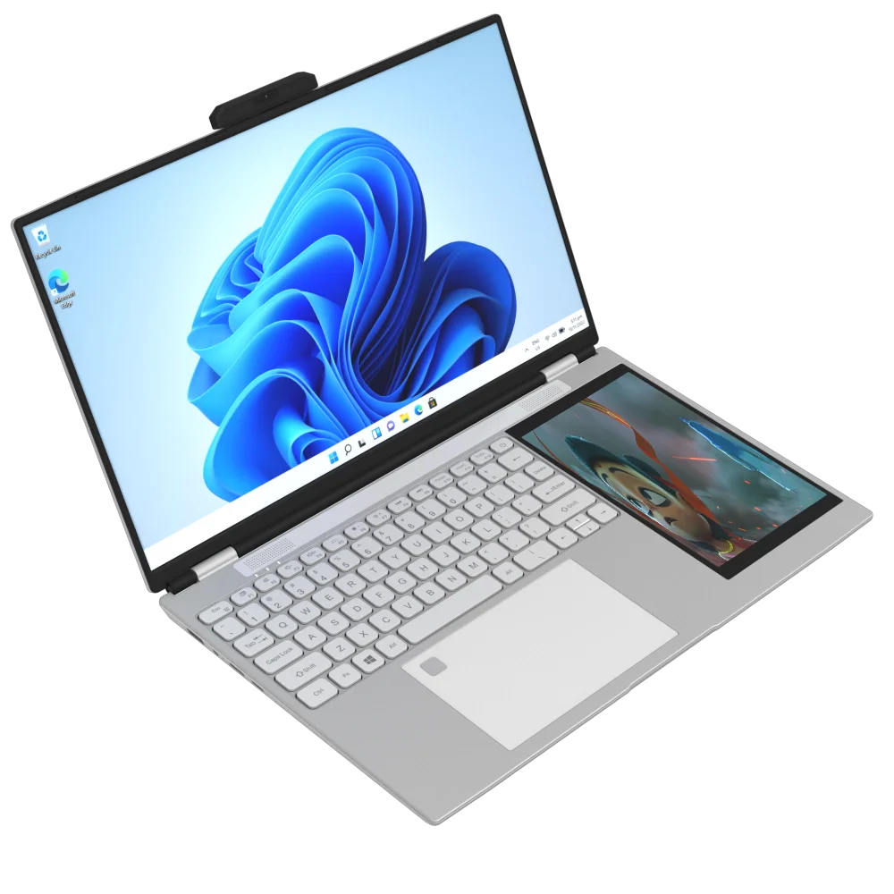 Laptop Dual Screen 15.6 Inches +7 Inches Intel Celeron N100 CPU 32GB RAM +128GB SSD Windows 11 Business Laptop