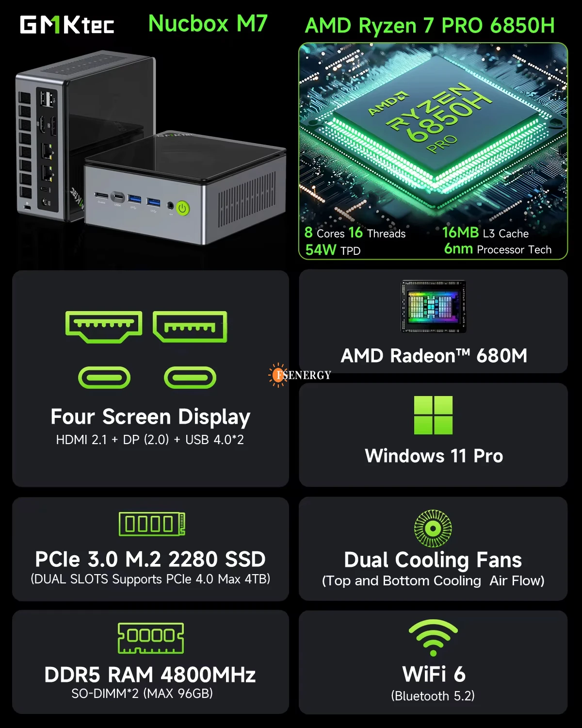 M7 AMD R7 Pro 6850H Gaming Mini PC 8-core 16-thread 16/32GB DDR5 512GB/1TB SSD Computer PC Mini Computer Gaming Desktop