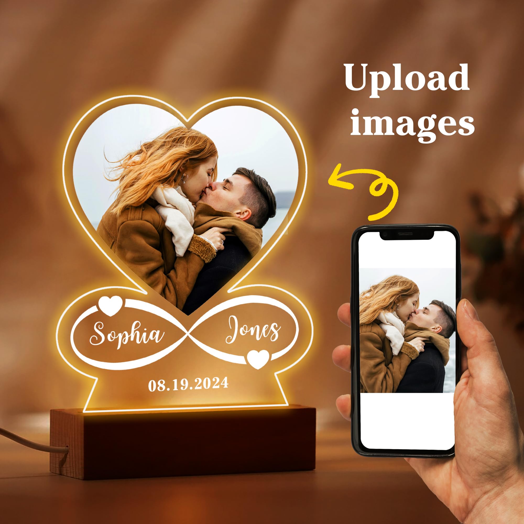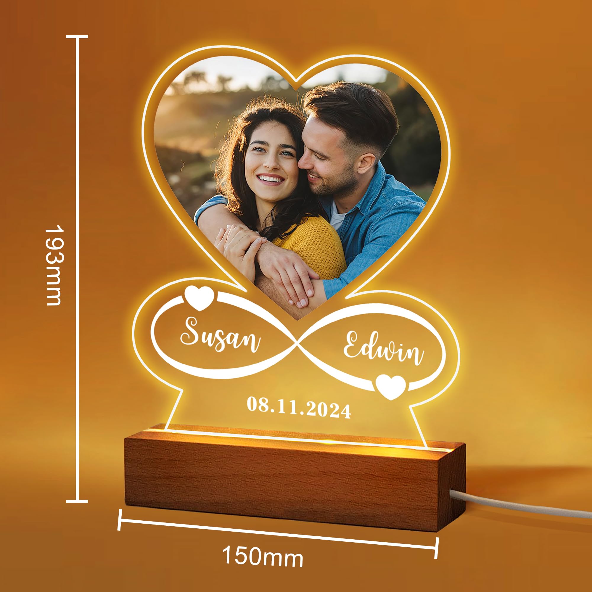 Personalised Gifts for Women Girlfriend Boyfriend Photo Gifts for Christmas Acrylic Plaque Custom Night Lights Picture Frame Gifts for Birthday Christmas Valentines Gifts for Him Her (Heart-Photo)