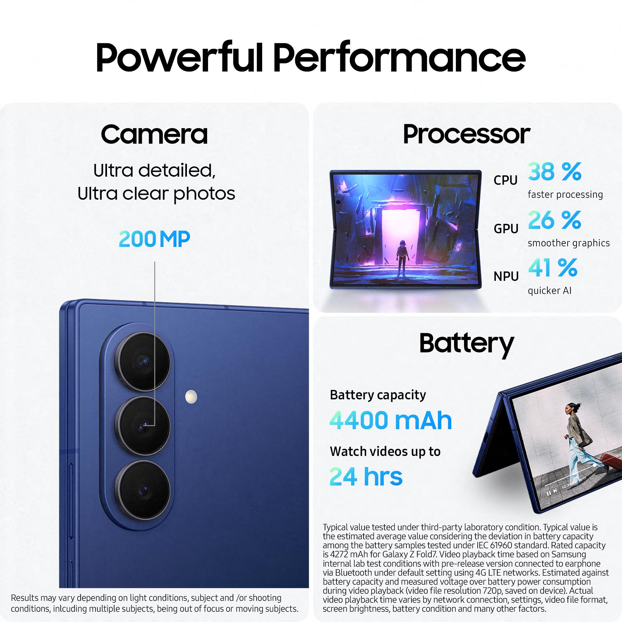 - If you enjoy gaming, watching videos or multitasking, you will want the Galaxy Z Fold7 with efficient battery power for all-day use; Its 4400 mAh battery and mDNIe technology help provide maximum power efficiency without draining battery life⁷ ⁸