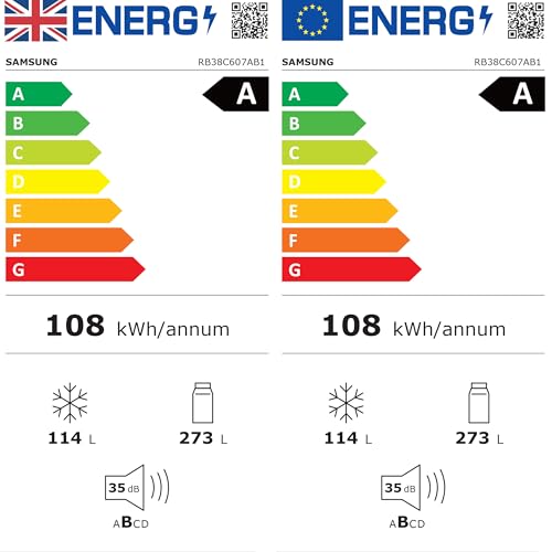 Samsung Series 8 SpaceMax Combi Fridge Freezer, Featuring Spacemax, AI Energy Mode and Twin Cooling, Black, Model: RB38C607AB1