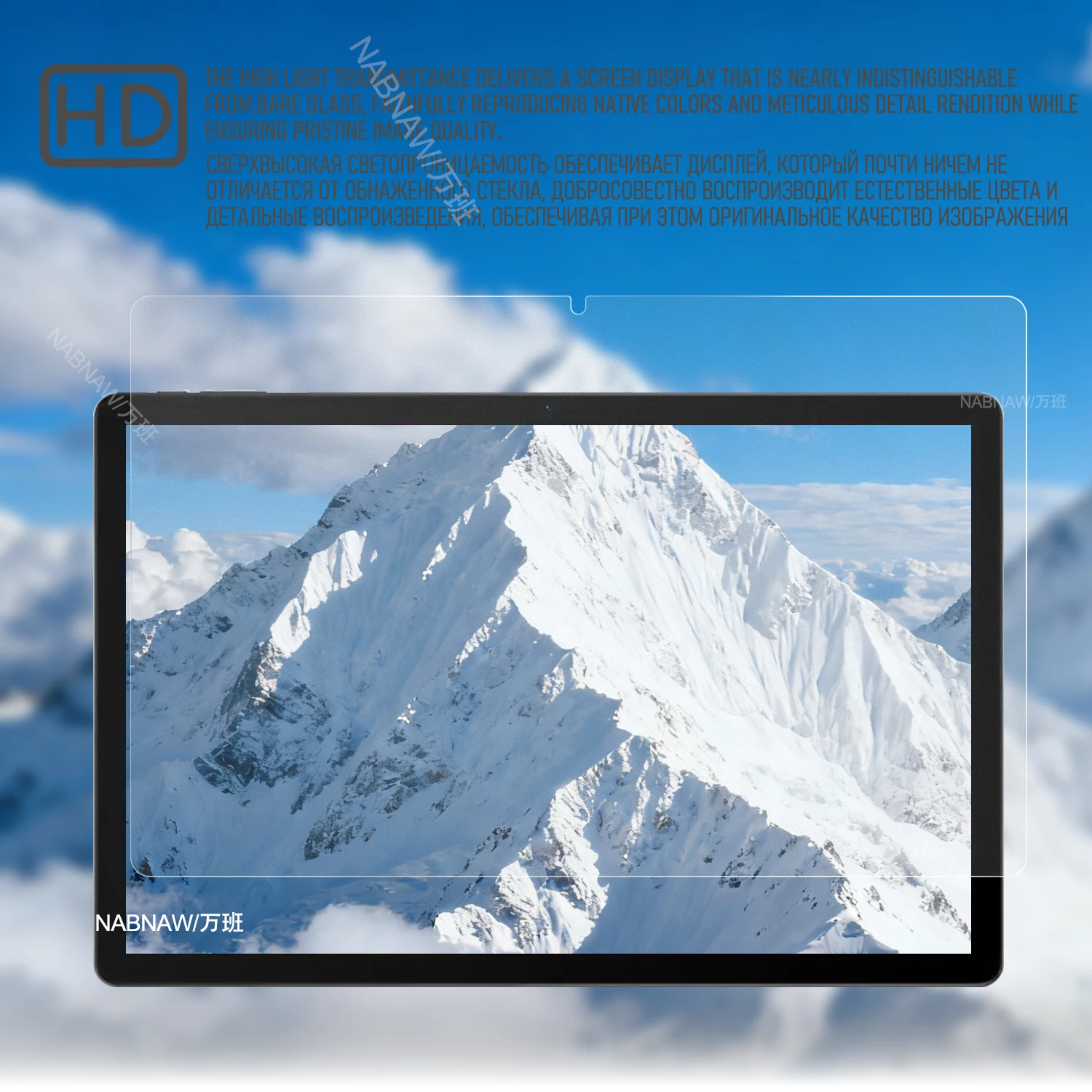 — tear off and discard the safety film of screen protector, calibrate the position of screen protector and tablet screen and slowly put it down.