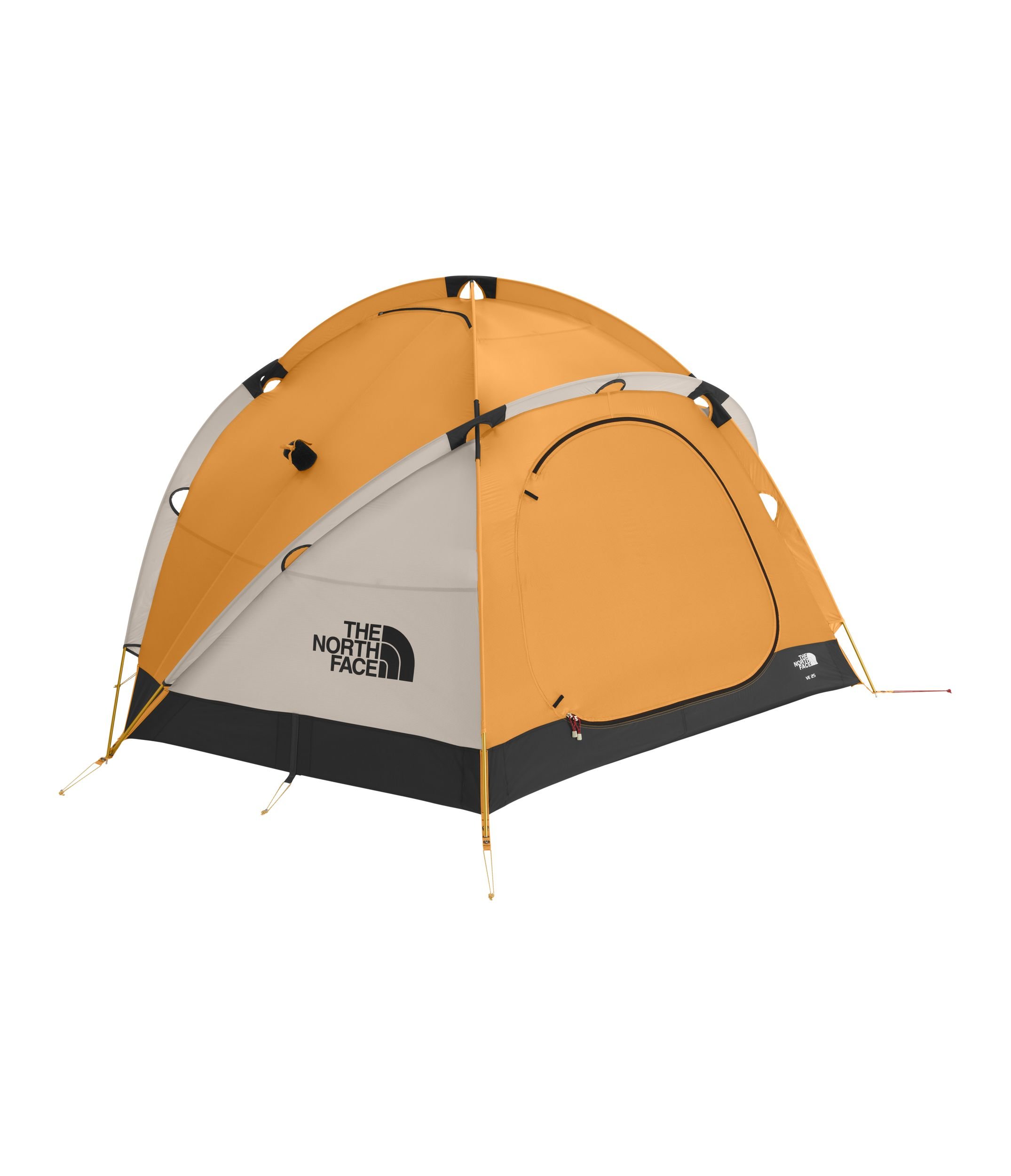 Details: The North Face VE 25 Tent is a relentless, three-person base camp lodging ready to weather severe conditions. This stellar expedition tent utilizes reinforced construction and multi-directional lift technology to ensure safety, warmth, and protection in the face of a mountain’s extreme conditions.Aluminum DAC Featherlite NSL are super strong without weighing down your packContinuous pole sleeves reinforce poles to withstand high windsMultiple exterior guys points, no-stretch Kevlar guylines with cam adjusters and an internal guy system support tent poles and structure in high winds and heavy snowTwo large doors allow easy entry and exit and good ventilationTwo vestibules offer 16 square feet of gear storageFull coverage rain fly with high-low venting keeps condensation to a minimumFully taped, nylon bucket floorReflective guylines and glow-in-the-dark zipper pullsCompatible with square gear loftFor lightweight setup in nice weather leave tent body behind; use the rainfly and footprint (sold separately) with the poles and stakesIncludes DAC stakes with pull cord and four fabric snow stakesPolyurethane (PU) port window, cold-crack tested to -60 F(-51 C)