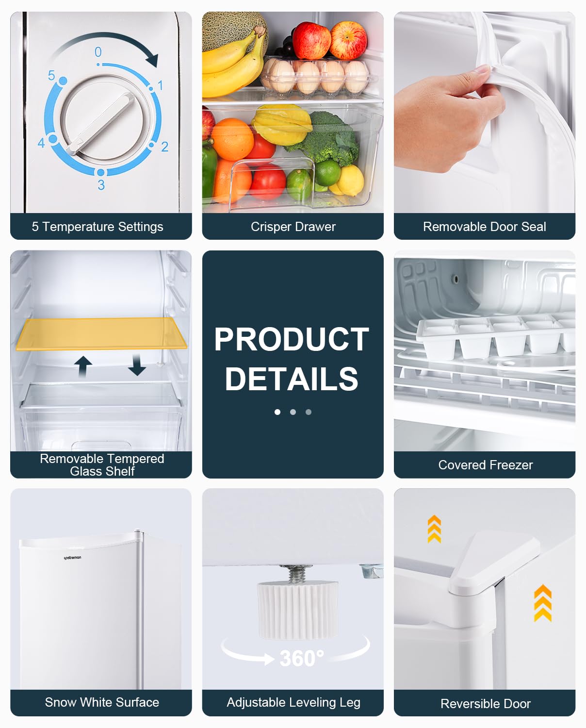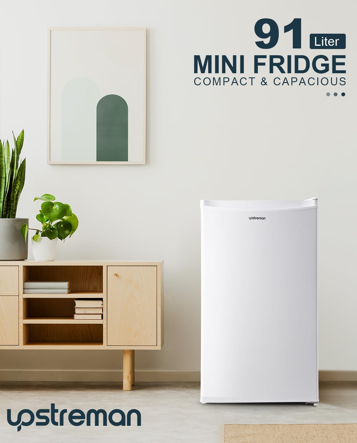 Upstreman 91L Under Counter Fridge with Chiller Box, Single Door Small Fridge, Adjustable Thermostat, Mini Refrigerator for Bedroom, Office, Dorm, BR321 (White)