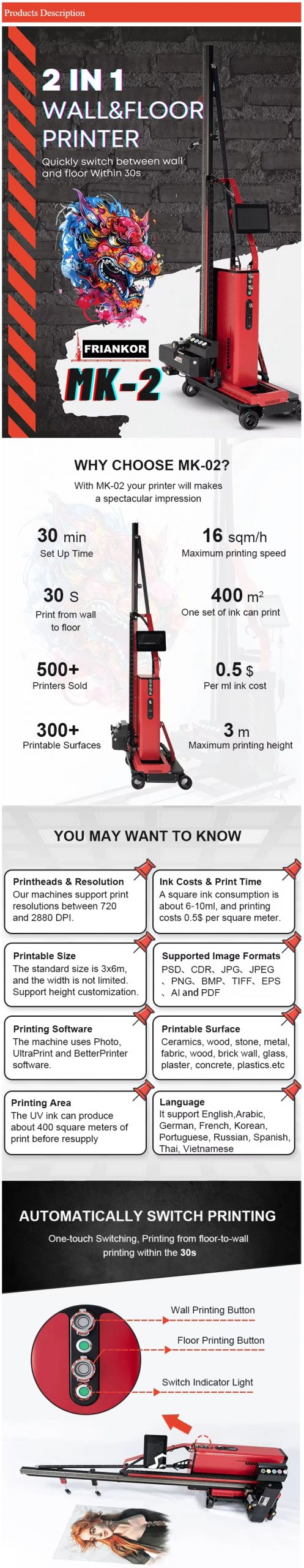 Wall and floor printer MK-02 Inkjet Printer Direct To 3D Wall And Floor Printing Machine