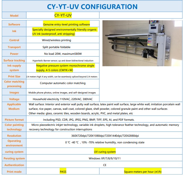 Wall Printer and Floor Printing Machine CY-YT-UV 2 In 1 Printer 3D visuals art on walls and floor include one laptop and one set of ink.