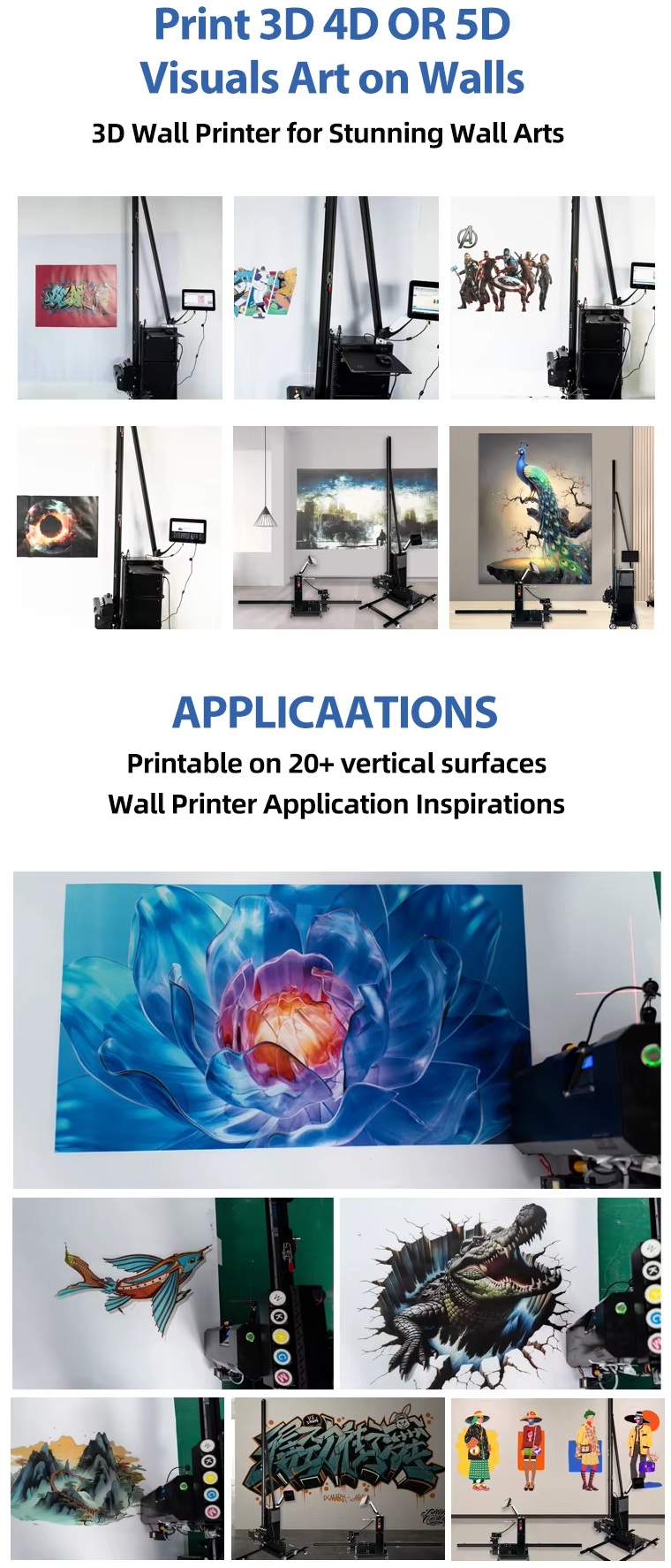 Print 3D 4D or 5D visuals art on walls.